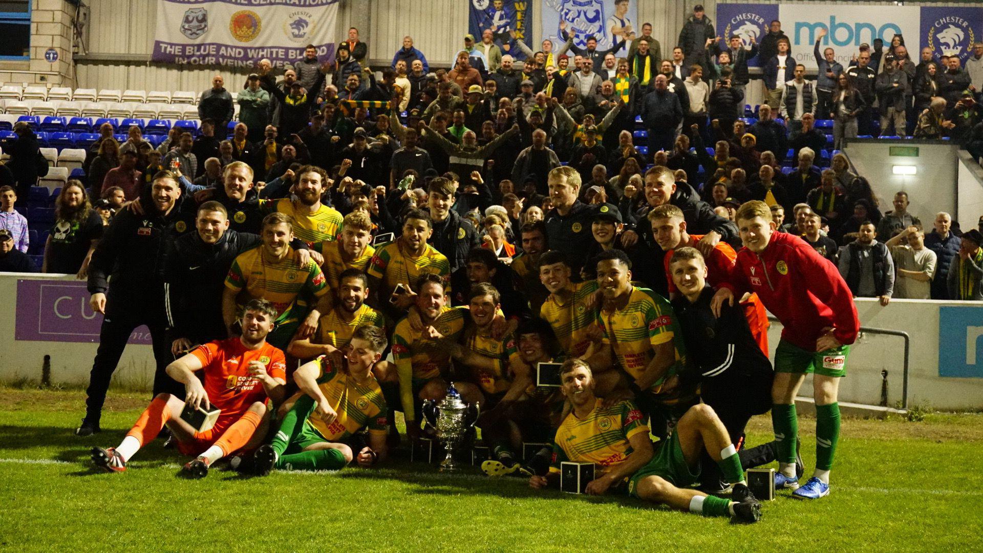 May 6th 2025 - Runcorn Linnets win the Cheshire Senior Cup for the first time, defeating Stalybridge Celtic 3-0 with an Adam Moseley hat-trick - exactly 100 years after predecessor club Runcorn AFC achieved their maiden win of 12 in the county competition.