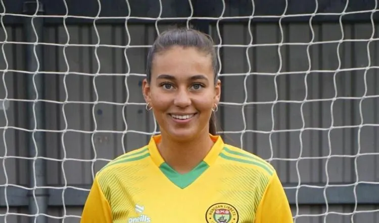 Hi, I’m Ellie, but everyone at football knows me as Dyson. I’ve been playing for the Linnets since 2019. I’m a bit of a utility player but prefer centre mid – though I’m often found on the wing. I wear number 7, my lucky number. I don’t have a set pre-match meal, but it’s usually cereal. After the game, I’m straight to Caitlin’s mum Dawn’s Sunday roast! My hype song is I Just Wanna Rock by Lil Uzi. Off the pitch, I’m a top-notch problem solver – flatpacks with no instructions are no problem for me.