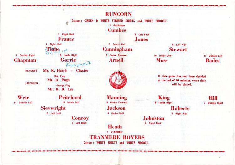 The Linnets' victory led to Runcorn's goalkeeper Jim Cumbes moving to Prenton Park for the following season.