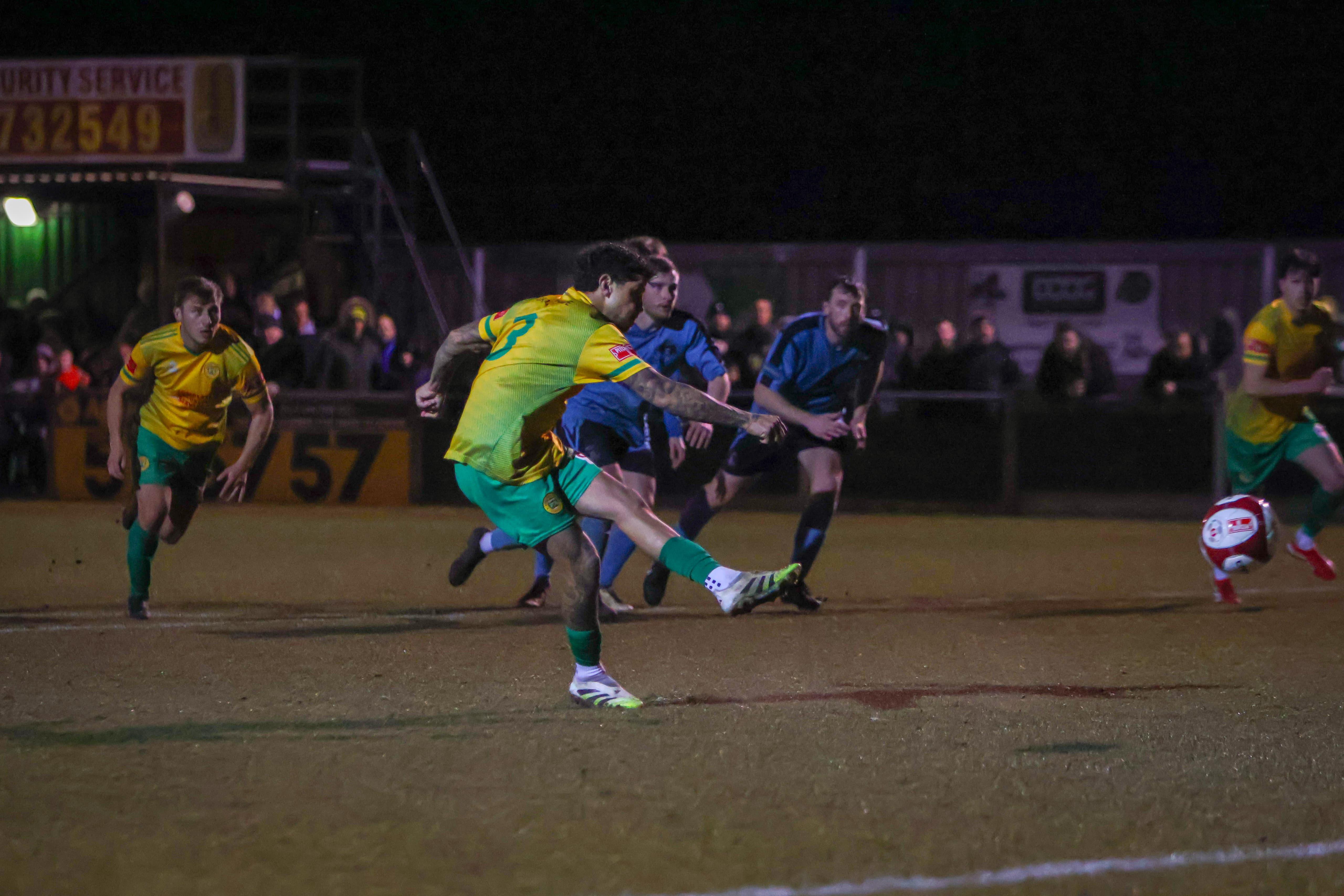 Town's only opportunity of the opening half came from a free-kick, which Jamie Apperley fired into the wall from almost on the 18-yard line.